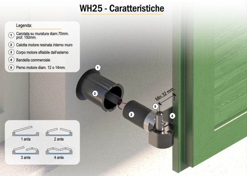 Chiaroscuro WH25 - Выдвижная автоматика для распашных ставней - Полностью утопленная на фасаде