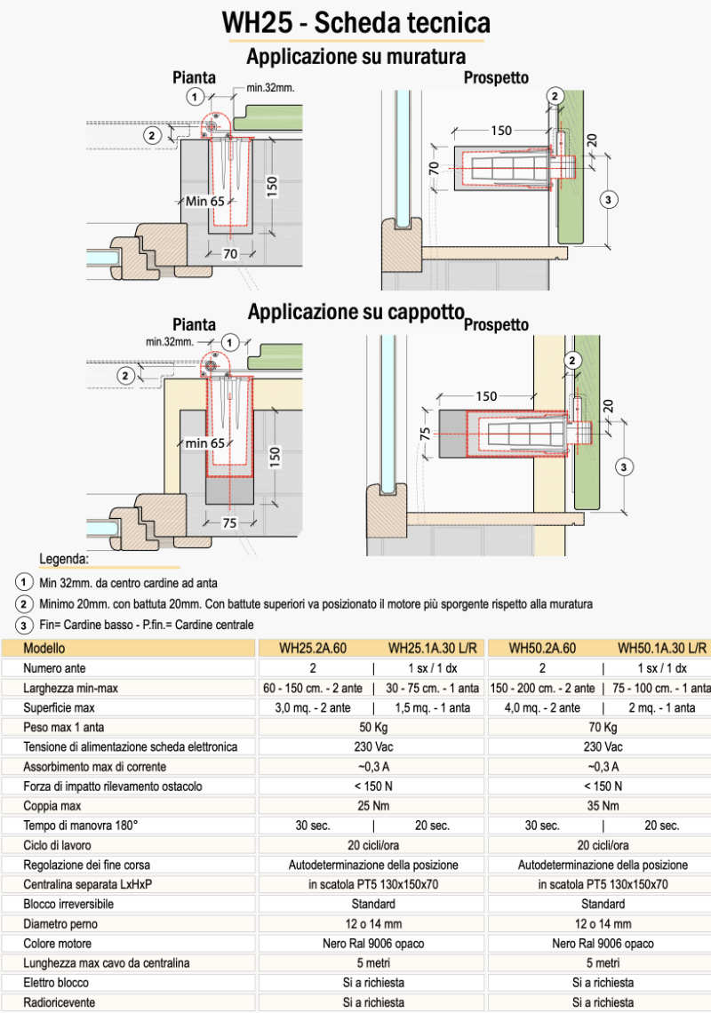 Chiaroscuro WH25 : полностью встроенная скрытая автоматика на фасаде , которая заменяет встраиваемую в стену петлю и идеально подходит для престижных помещений с абсолютной эстетической чистотой.