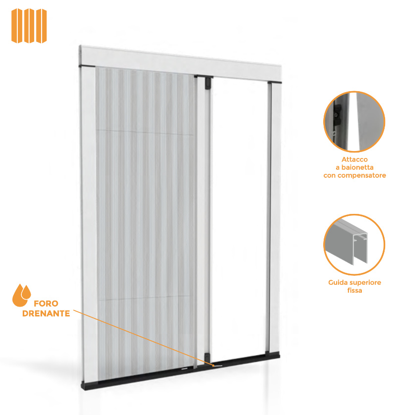Система Colomba L Effezeta: гофрированная москитная сетка с боковым скольжением и фрикционным отверстием