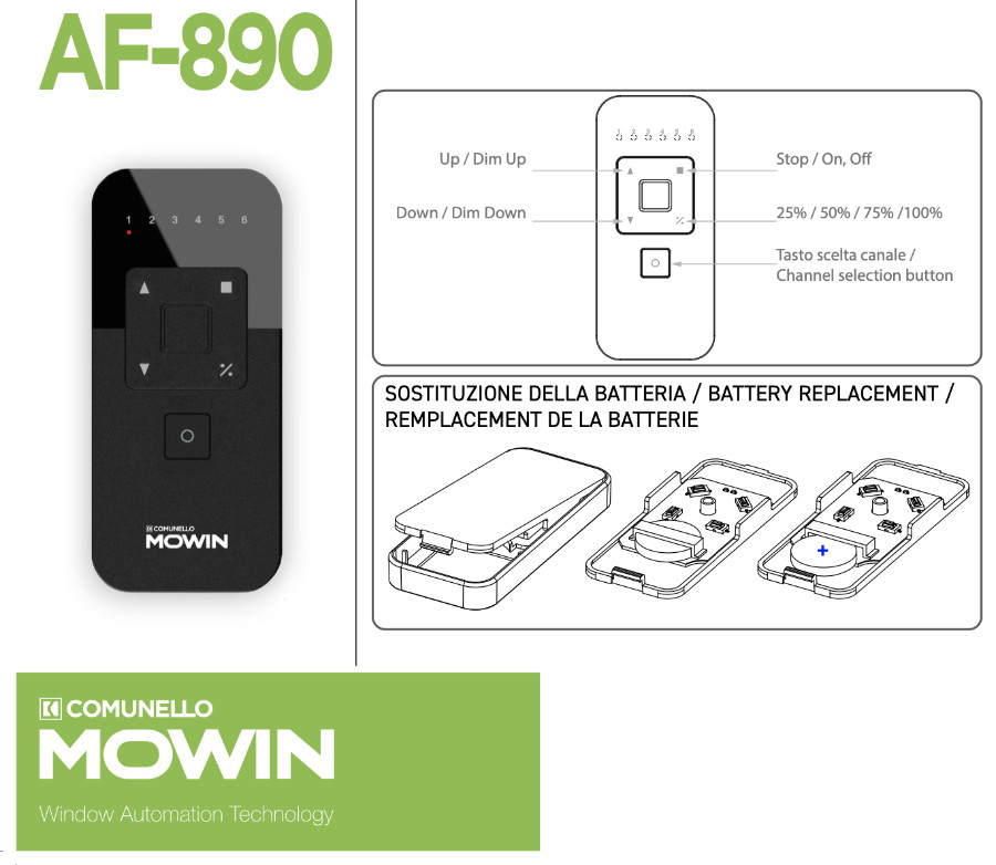 Radiocomando 6 Canali per Attuatori Comunello AF 890