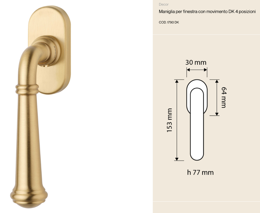 изготовлен из латуни и полностью производится в Италии . Это оконный аксессуар, который выходит за рамки простой функциональности: он становится