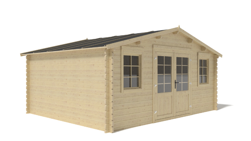 двойной двери, замка и больших окон для отличного освещения . Дом из пихты Камилла строится по принципу блок-хауса, который предполагает использование блокирующих планок.