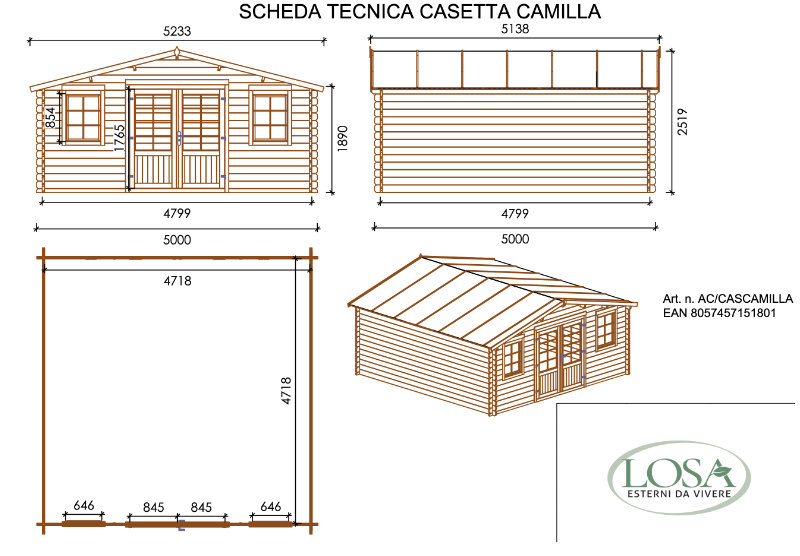 Деревянный дом Camilla Losa — идеальное решение для хранения садовых инструментов, других предметов или превращения в жилое помещение.