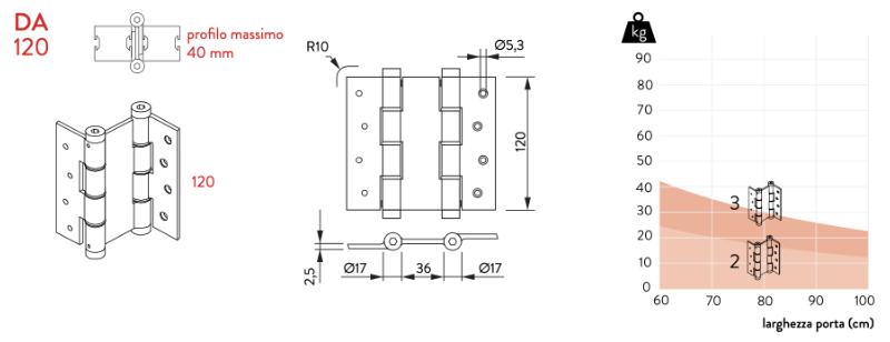 Петля двойного действия Justor DA 120 предназначена для традиционного крепления с помощью шурупов и для сборки с помощью сварки в раме и двери.