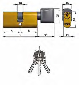 Art.143 / 07 OMEC; Двухместный цилиндр с ручка Медные Овальные (5 Pins)