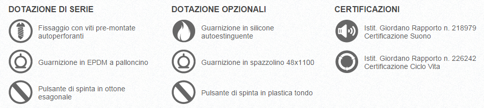 Серия Pressure отличается запатентованным механизмом двойного регистра ; это запатентованный механизм, направленный на идеальное закрытие зазора между дверью и полом, даже с противоположной стороны от кнопки.