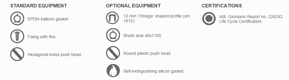 Устройство предотвращения сквозняков Comaglio представляет собой запатентованную автоматическую систему , которая при закрытии двери автоматически блокирует возможность проникновения холода, пыли и шума в окружающую среду.