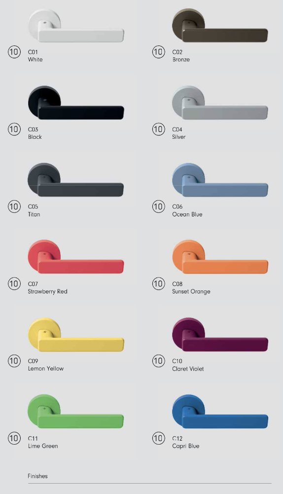 Коллекция предлагается с круглой розеткой и в многочисленных цветных вариантах отделки интенсивных тонов, идеально подходящих для обогащения любого пространства и интеграции в различные стили дизайна интерьера.