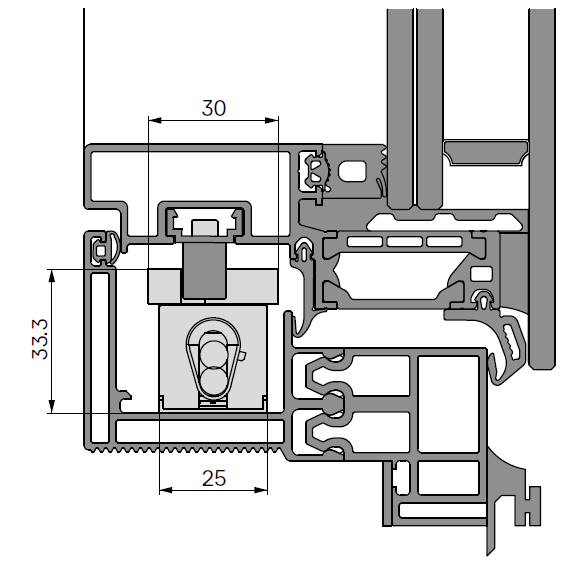 При использовании в сочетании с цепным приводом (серии QUASAR, VEGA, NANO 24 В постоянного тока) гарантирует максимальную герметичность при закрывании окна, даже при наличии нескольких точек запирания.