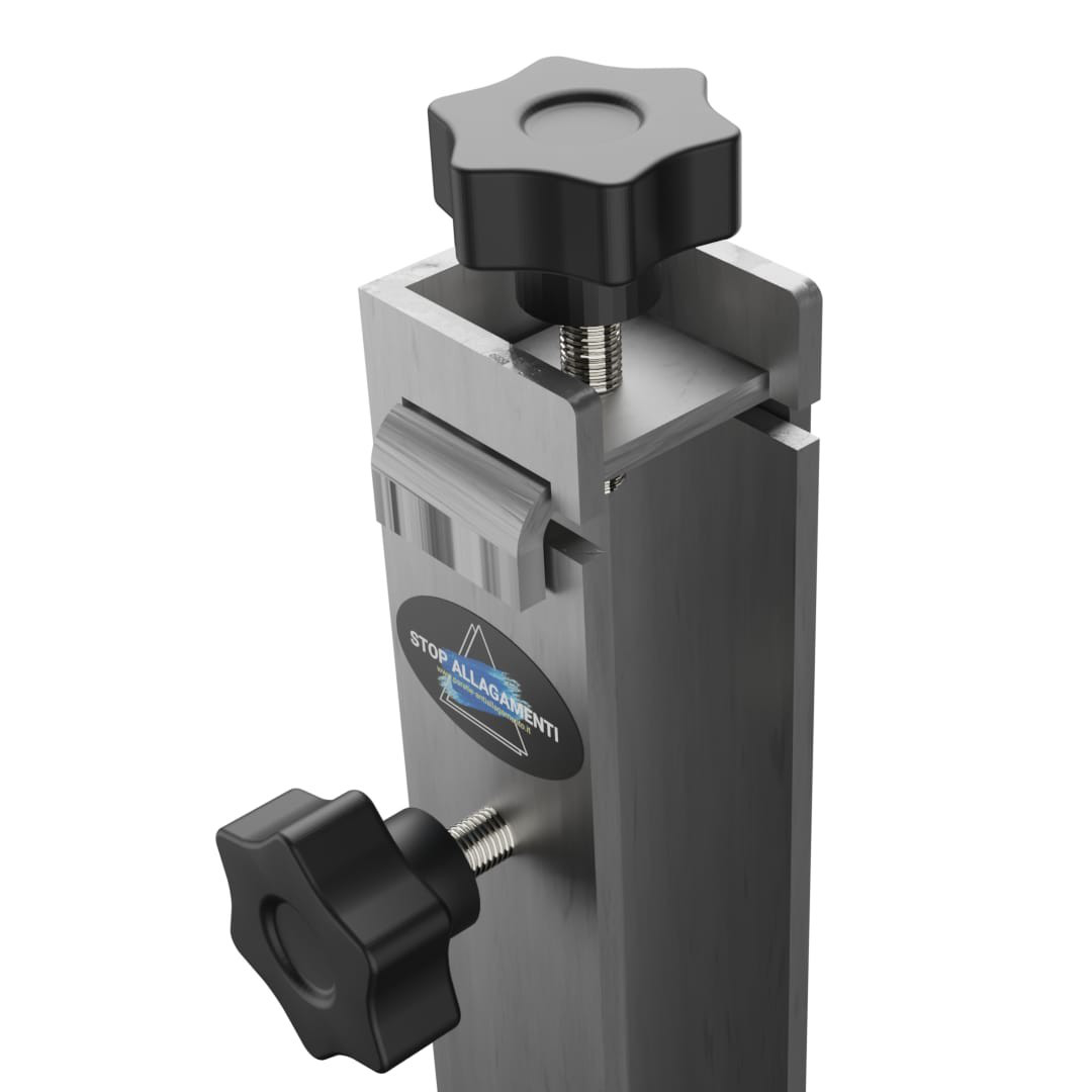 Система использует стальные боковые кронштейны , создающие вертикальное давление, и прочную древесно-стружечную плиту, формируя устойчивый барьер, который можно адаптировать к различным проемам. Кронштейны крепятся к боковым сторонам проема. При необходимости плита вставляется и фиксируется на месте с помощью вертикального давления.