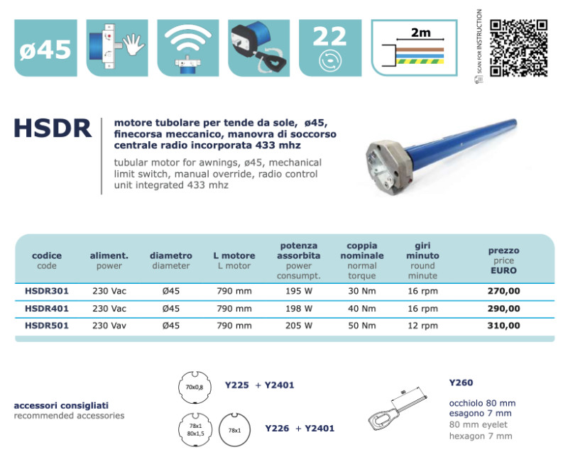 Двигатель HSDR401 : трубчатый двигатель с аварийным режимом работы, радио 433 МГц.