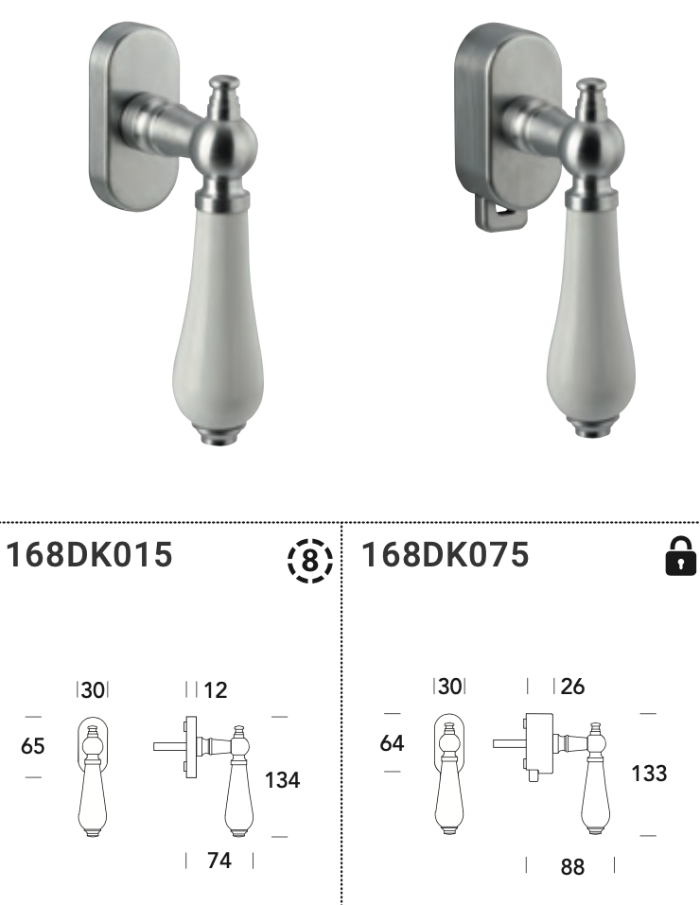 Фарфоровые оконные ручки Reguitti: без пуговицы или с пуговицей