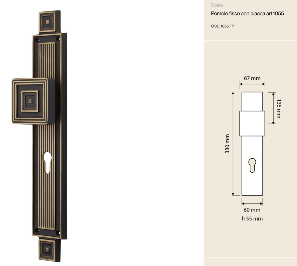 Фиксированная дверная ручка Opera Linea Calì с накладкой — предмет мебели, который сразу же привлекает внимание: солидный, элегантный и смелые. Её идеально сбалансированные геометрические формы и накладка, украшенная вертикальными линиями, напоминают неоклассический стиль, переосмысленный в современном ключе, чтобы вписаться даже в самые современные интерьеры.