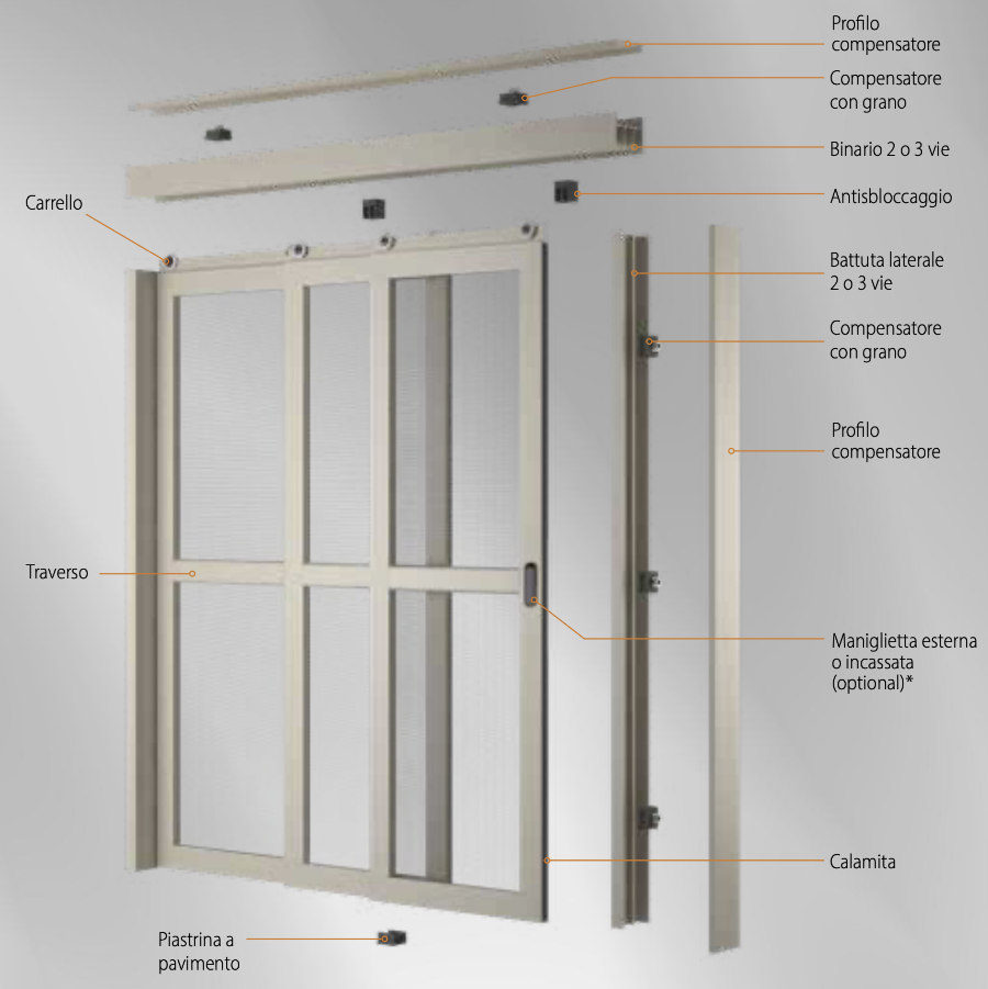 Maya Bettio — москитная сетка с горизонтально скользящими панелями, чья прочная и устойчивая конструкция идеально подходит для покрытия очень больших размеров.