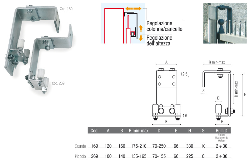 Эта система, предназначенная для регулировки как по высоте, так и по ширине, гарантирует индивидуальную настройку, подходящую для различных потребностей установки. Оснащенный двумя нейлоновыми роликами, он обеспечивает плавное и стабильное движение ворот. Установка выполняется быстро и легко благодаря уже имеющимся отверстиям, что обеспечивает безопасную и долговечную фиксацию.