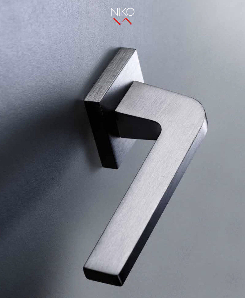 Квадратный дизайн розетки идеально сочетается с строгой формой ручки.