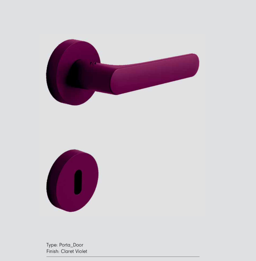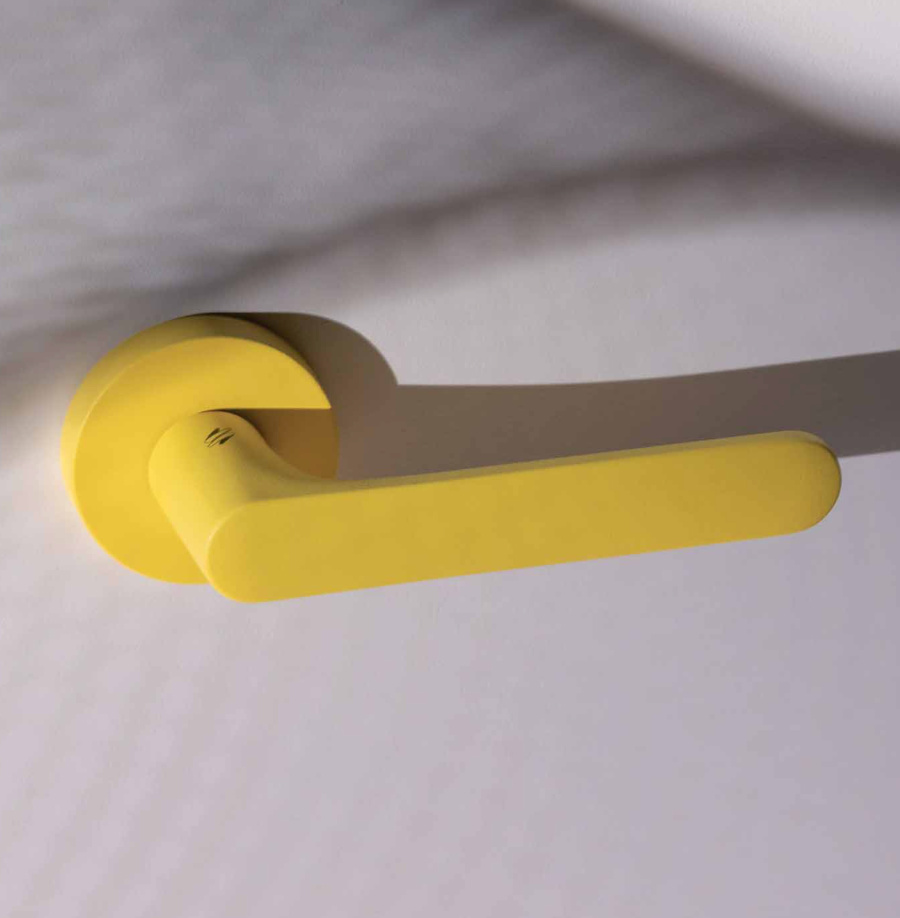 Дизайн One Mood Colombo: цветная дверная ручка на круглой розетке. Выберите желаемую отделку из множества доступных цветов.