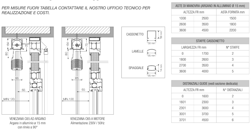 Солнцезащитный крем для улицы - Маленькие помещения 65 мм - Лебедка или мотор - Сделано в Италии компанией Centanni