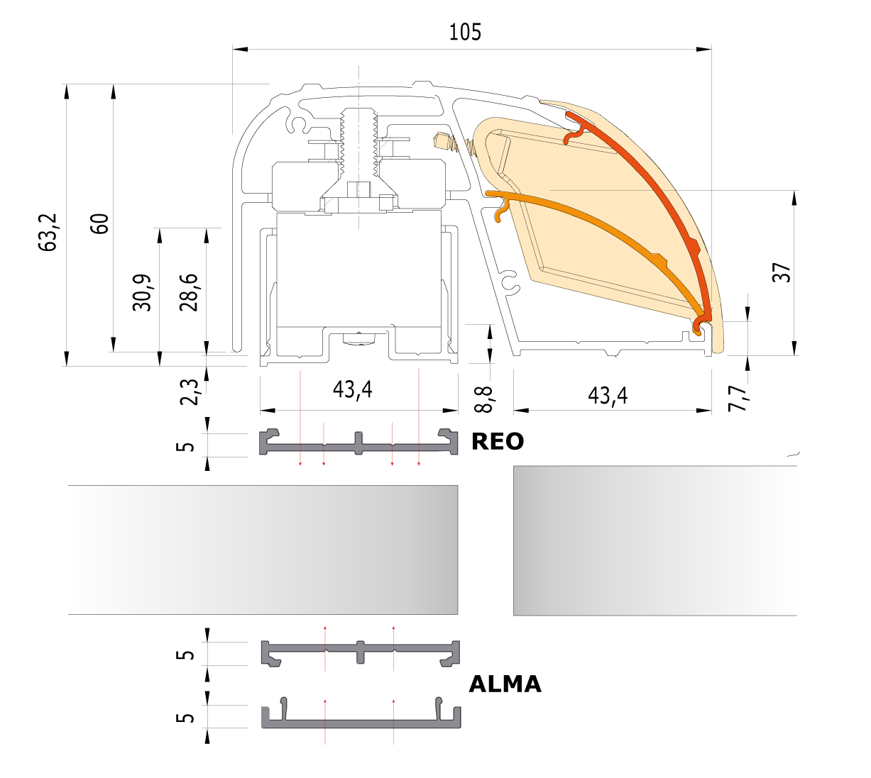 «P300RP» ПРОФИЛЬ С ЭЛЕКТРОМАГНИТНЫМ СТОПЕРОМ 400 мм (1 х 300 кг)