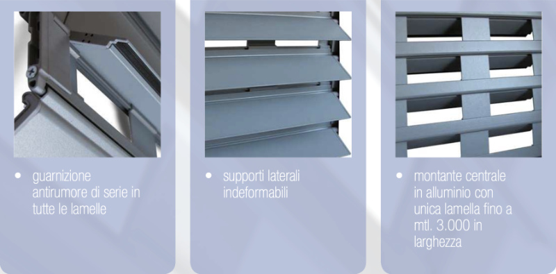 Преимущество этого решения заключается в том, что можно плавно регулировать прохождение воздуха и света , удерживая рольставни опущенными, благодаря наружной ориентации подвижных створок, когда они опираются на причал.