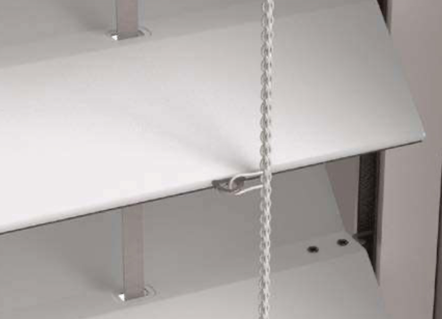 Отверстие диаметром 7 мм с отделкой по кромке защищает полосу во время подъема и опускания планок от любых помех или истирания, которые могут ее повредить. Размер текстовой полосы 6 x 0,33 мм почти полностью закрывает отверстие, избегая попадания прямого света.