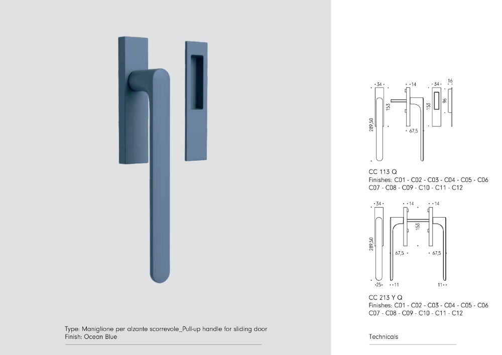 Ручка для раздвижной двери Colombo Design CC 113 ONE Q MOOD : квадратная версия с удлинённой розеткой, высота 289,5 мм. Строгий и современный дизайн.