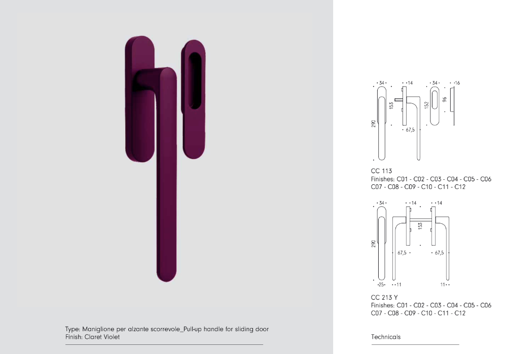 Изготовленный в Италии из высококачественных материалов, этот аксессуар превращает раздвижную дверь в элемент интерьера с современным характером.