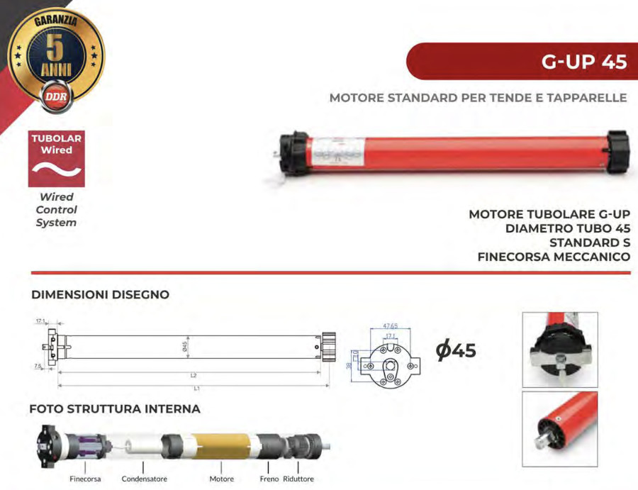 трубчатый двигатель G-UP 45 DDR Group по лучшей цене в Windowo, интернет-магазине, специализирующемся на решениях для навесов и ставней.