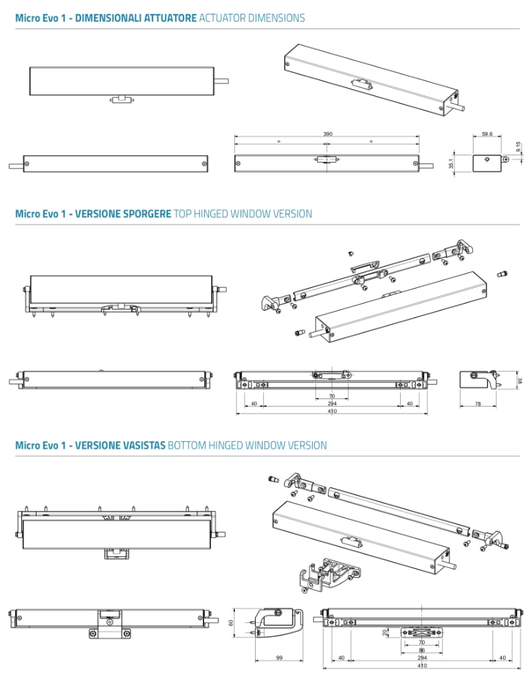 Привод с двойным звеном Micro Evo 1 Mingardi для откидных окон или окон Vasistas
