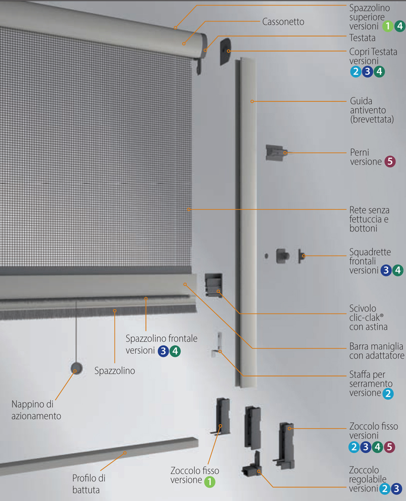 В сильных ветров, кисти вращается в специальном гнезде, потянув сетку, предотвращая утечку из направляющей.