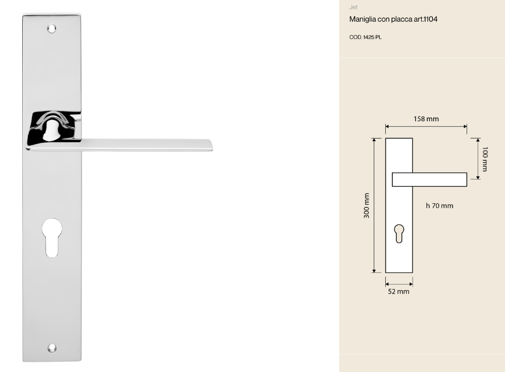 Ручка с пластиной Jet Linea Calì олицетворяет собой квинтэссенцию современного дизайна: тонкие линии, идеально гладкие поверхности и четкая геометрия, придающая элегантность каждой двери.