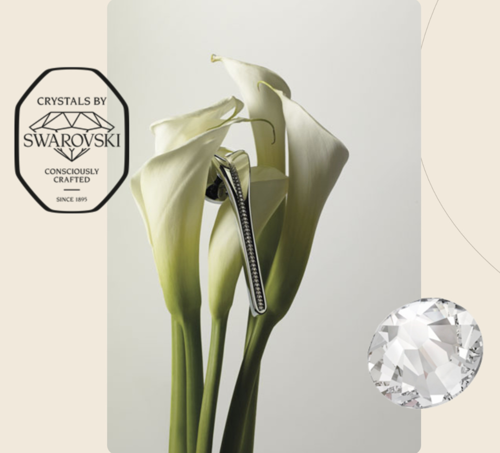 полоска кристаллов Swarovski® подсвечивает металлическую поверхность, создавая игру отражений, которая придаёт дизайну движение и живость. В результате получилась изысканная ручка, способная объединить в единое целое искусство, свет и материю.