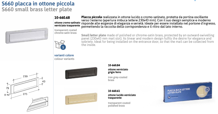 Продажа латунных табличек для почтовых ящиков производства Италии
