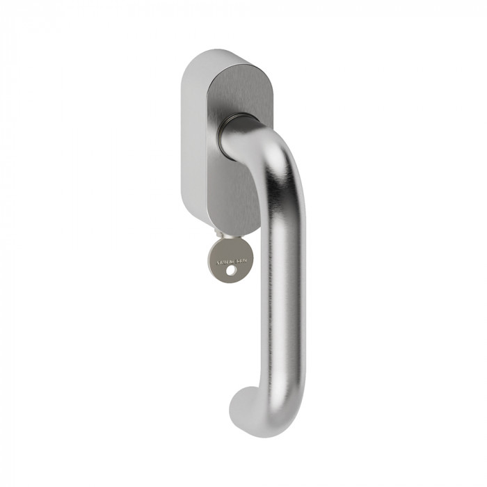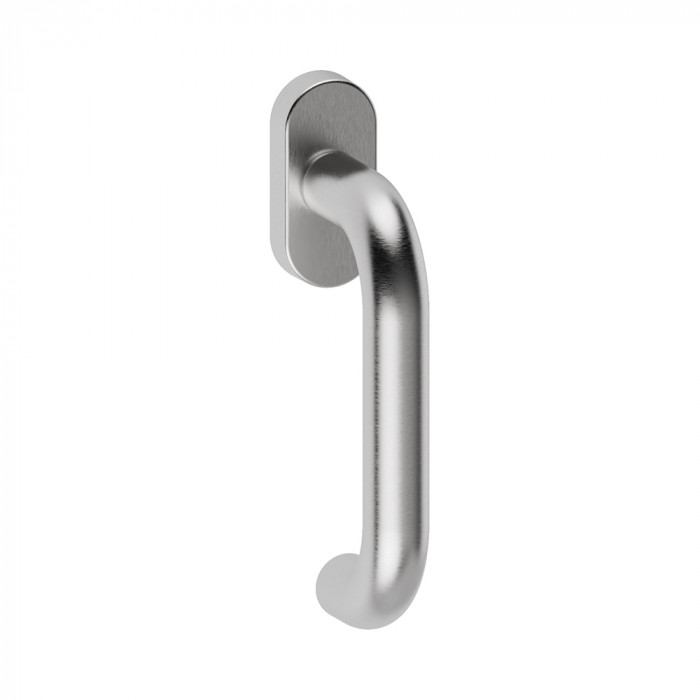 Stockholm Reguitti Inox — современная оконная ручка с закругленными линиями и изогнутой ручкой.