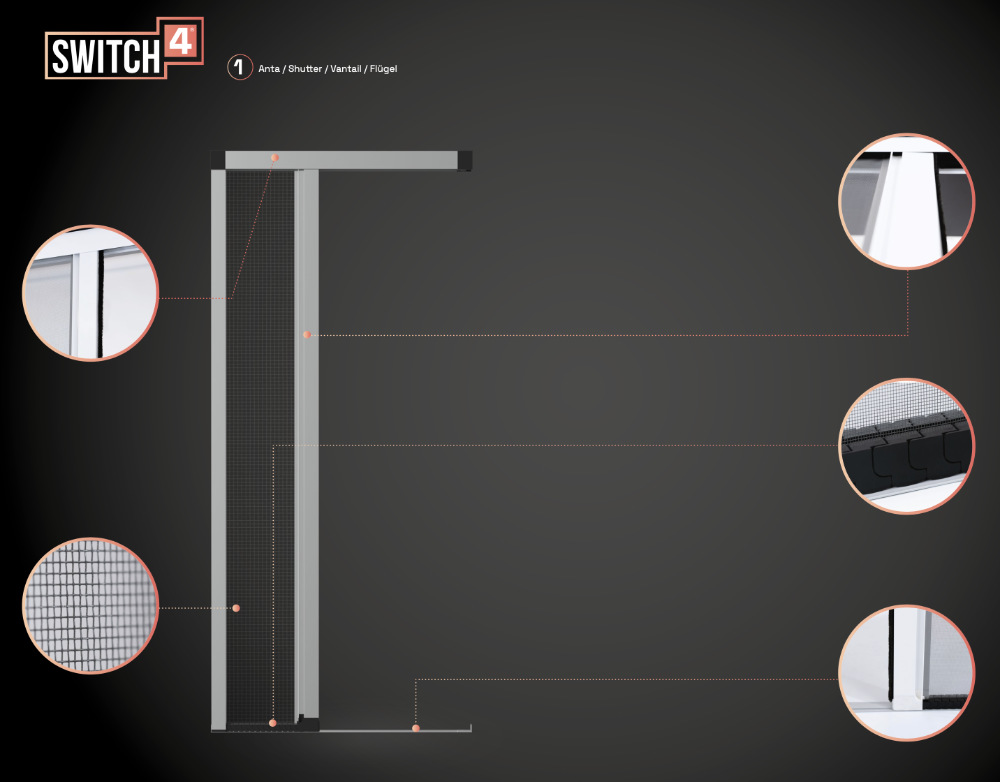 Компактность : Switch4 не требует много места для установки, идеально подходит для замены старых москитных сеток или в помещениях с ограниченным пространством.