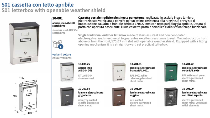 - S01 Silmec оснащен откидной дверцей, это простой и в то же время функциональный почтовый ящик.