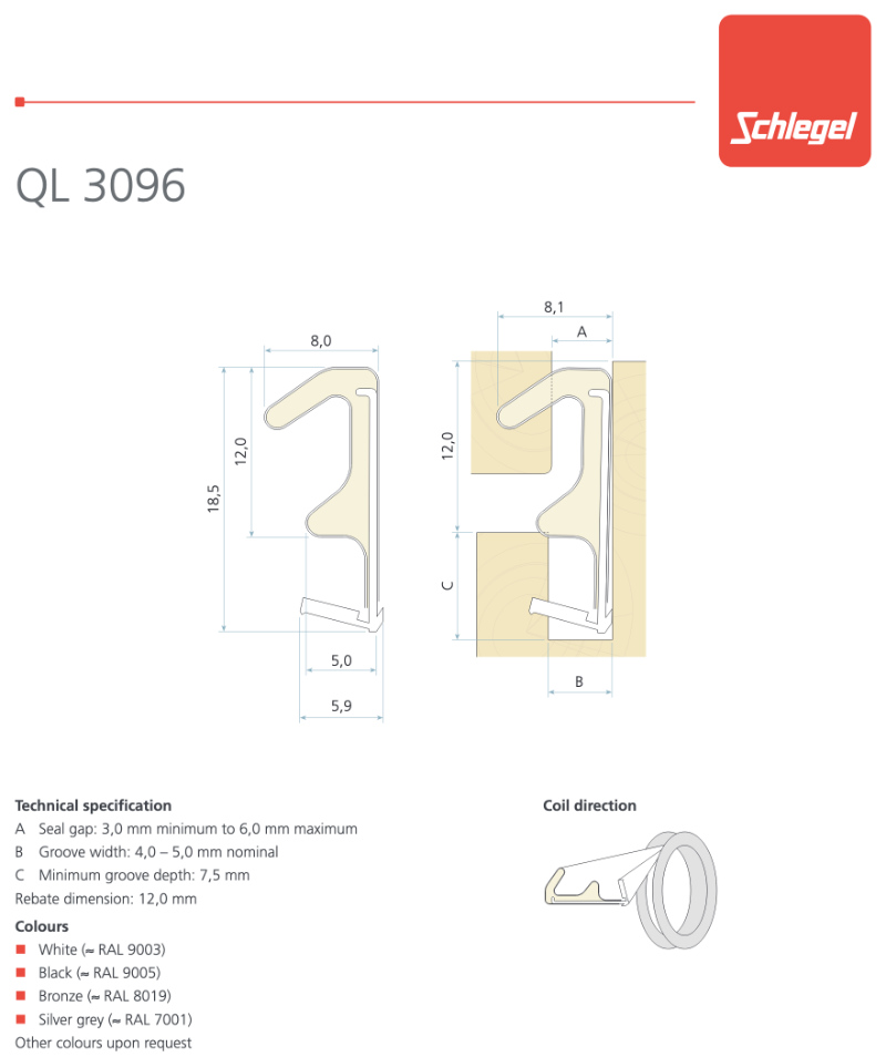 Уплотнитель Schlegel QL 3096 входит в линейку Q-LON и предназначен для обеспечения превосходной герметизации деревянных дверей и окон.