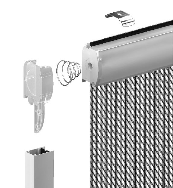 - Вертикальная пружинная москитная сетка с направляющими, снабженными щетками;