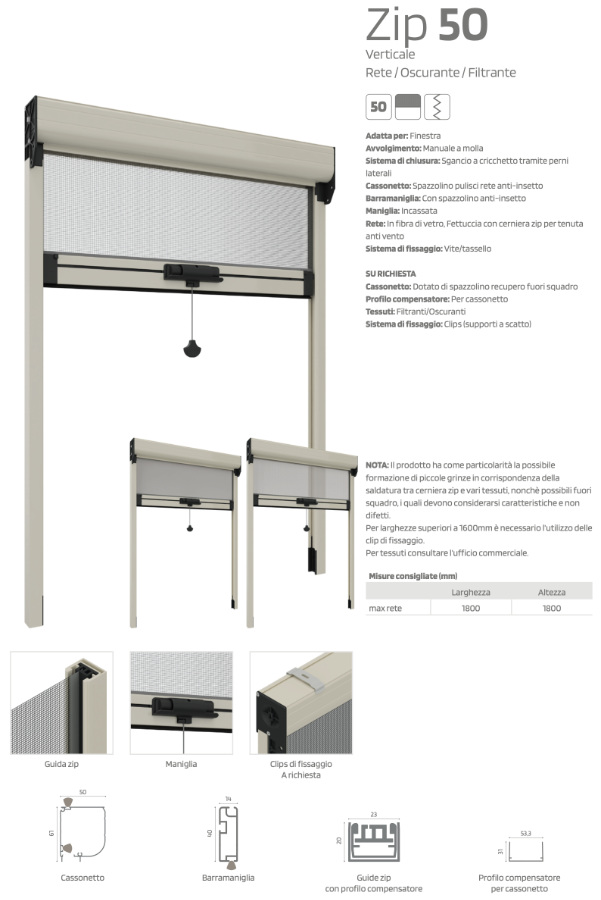 Вертикальная противомоскитная сетка Officine Rami направляющими Zip 50