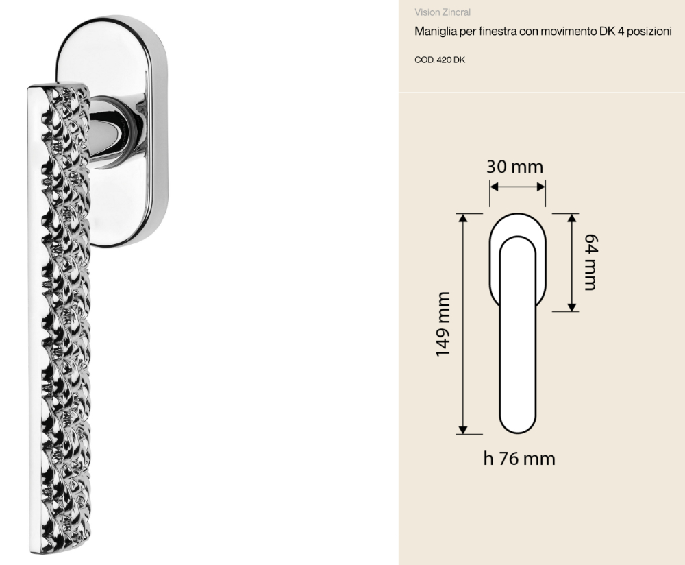 Vision Zincral Linea Calì - DK Window Handle - Embossed Grip