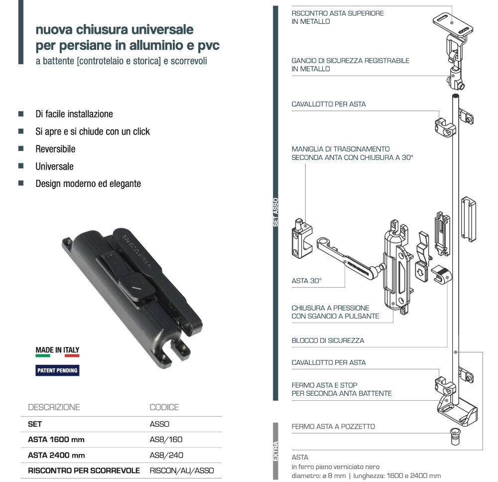 Затвор для ставен из алюминия и ПВХ Pettiti Asso: универсальное, простое и элегантное решение для ваших ставен из алюминия и ПВХ, как распашных (подрамных и исторических), так и раздвижных.
