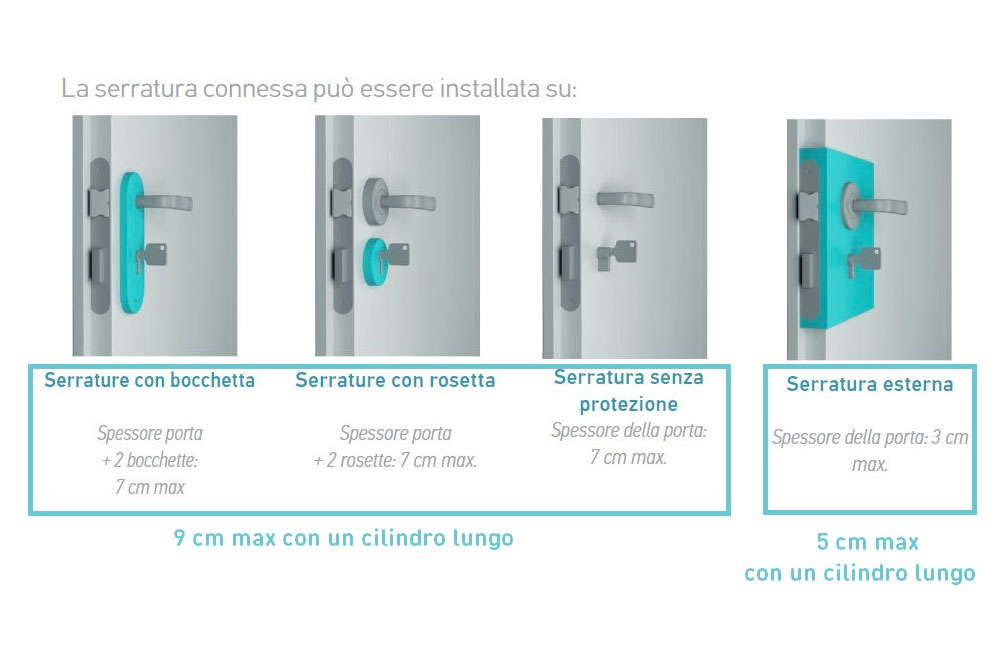 • толщина двери с внешним замком - максимум 3 см.